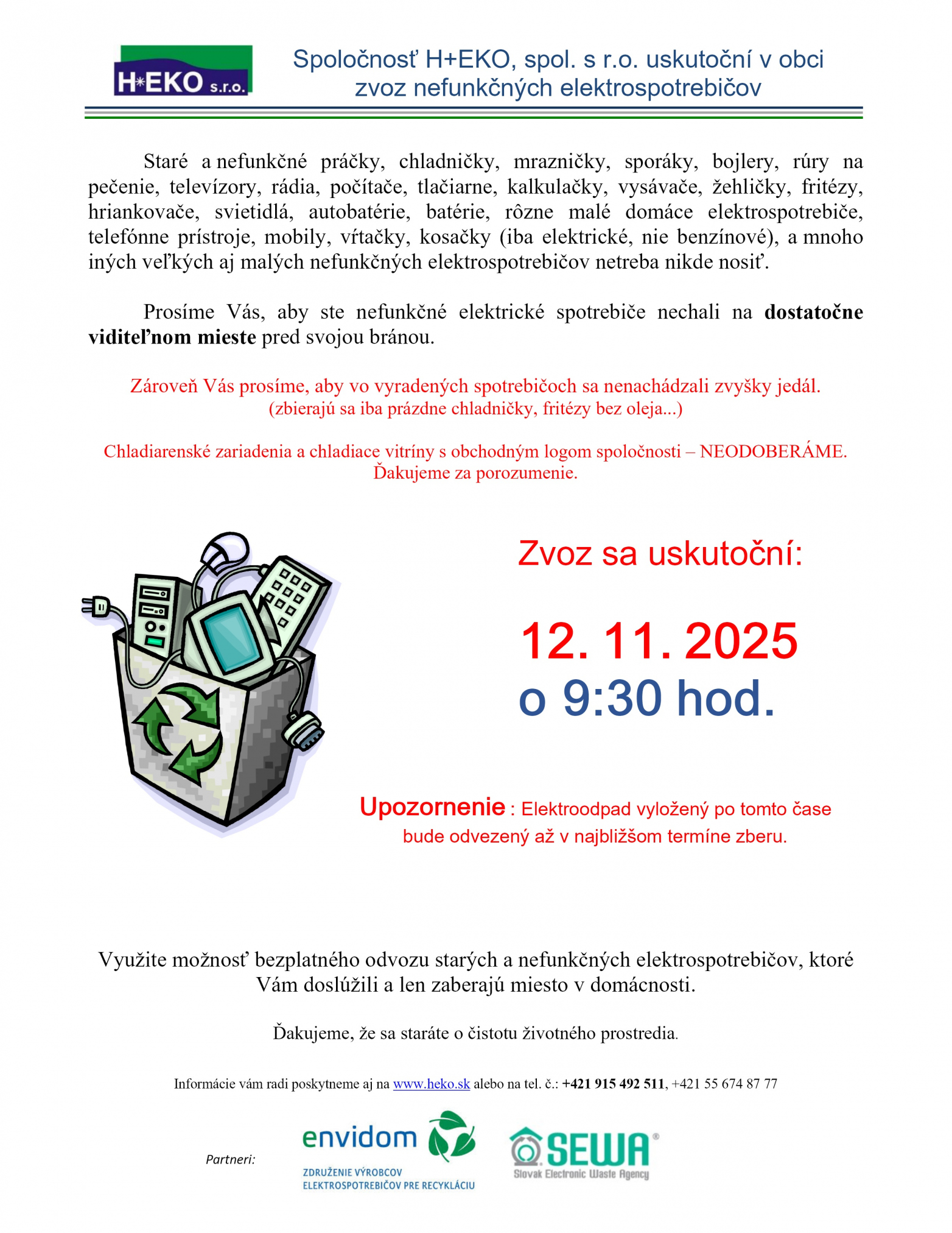 Zvoz nefunkčných elektrospotrebičov 12.11.2025