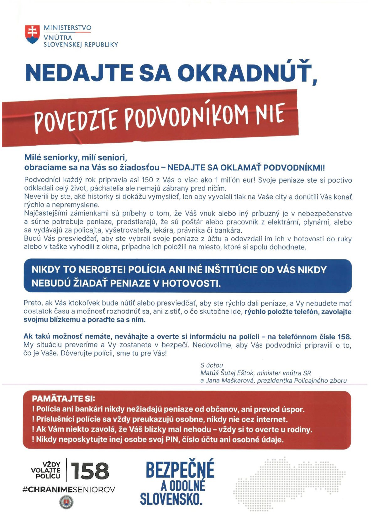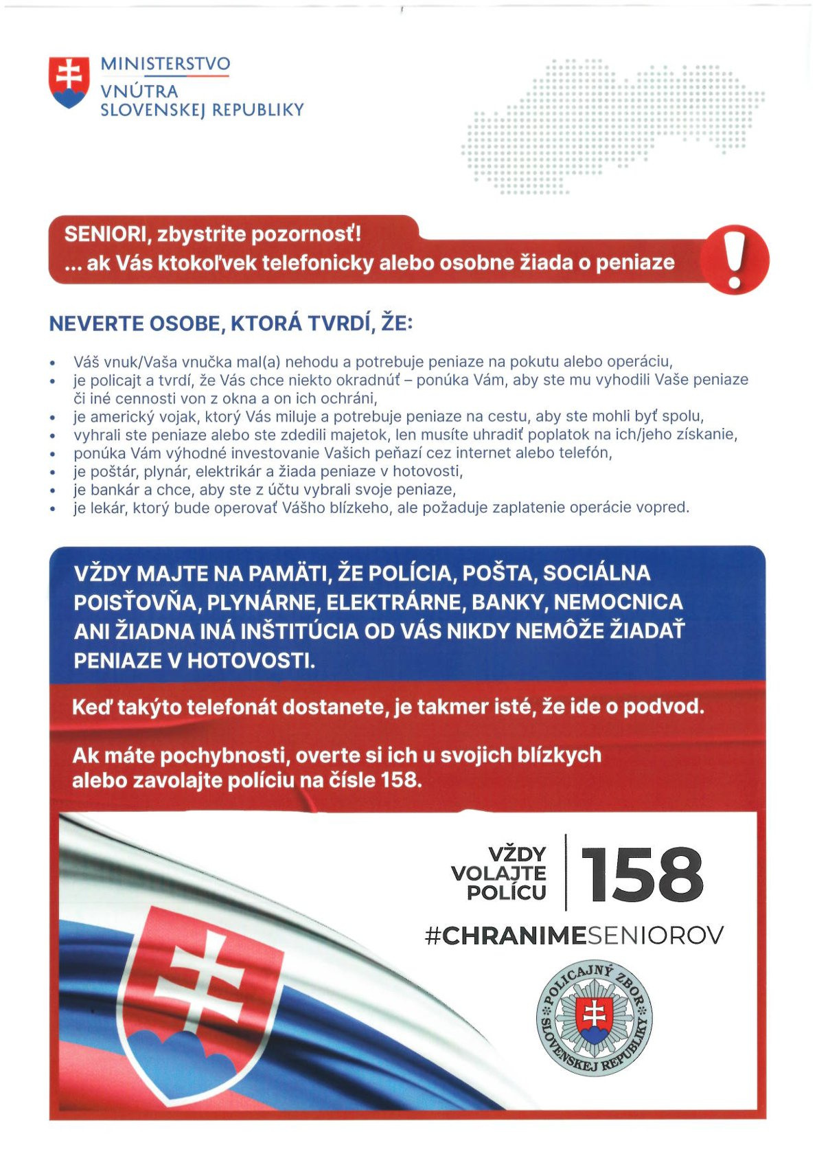 Milé seniorky, milí seniori NEDAJTE SA OKLAMAŤ PODVODNÍKMI !!!