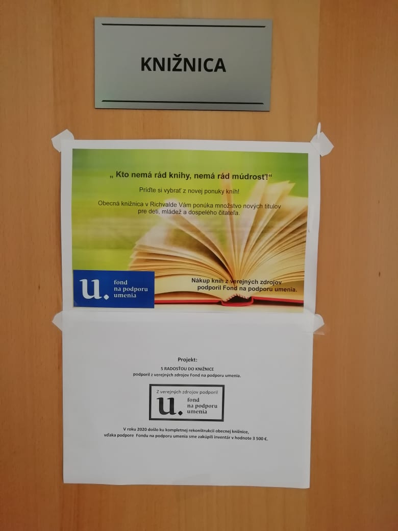 "S radosťou do knižnice"- podporil z verejných zdrojov Fond na podporu umenia. Obecná knižnica prešla kompletnou rekonštrukciou.